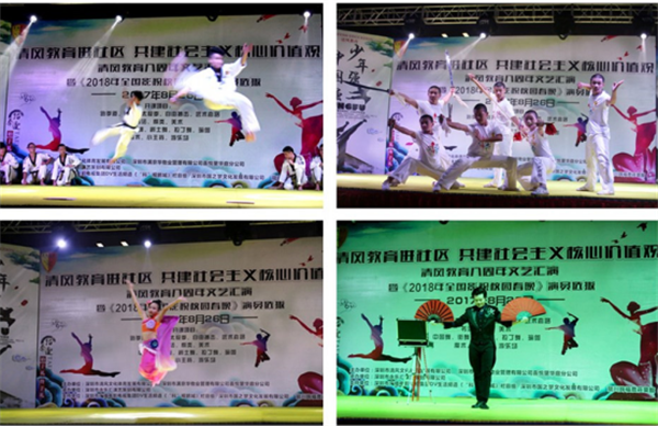 汇演活动现场,华语乐坛当红男歌手肖家永先生现场演唱《星空》 《好兄弟》 《夜蒲》等歌曲拉开了活动序幕,清风教育基地总经理张亚锋先生致欢迎辞,对在百忙之中抽出宝贵时间来参加此次活动的各位来宾及家长、朋友们表示热烈欢迎,对大家关心武馆教育成果,支持教育工作,关心孩子成长的行动表示衷心的感谢。张亚锋总经理介绍说,清风教育基地落户深圳八年来,秉承“耐心执教、精心育人”的教学理念,用爱心、热心、耐心、恒心、虚心真诚对待每一位学员,着重锻炼学员自身的体能、意志,培养学员自立、自强的品质。为了给学员们打造更高的平台,清风学员连续五年登上深圳少儿春晚舞台,登上全国影视校园春晚全国性舞台。八年来,在社会各界的支持与鼓励之下,清风教育基地得到了良好的发展,此次文艺汇演既是对清风教学成果的展示,也是向社会各界多年来对清风的支持表示感谢。