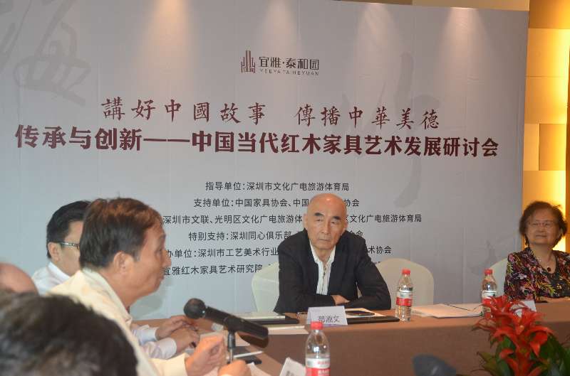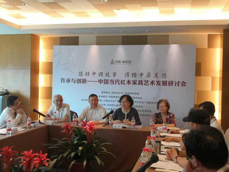 此次研讨会由深圳市文化广电旅游体育局指导,深圳市文联、光明区文化广电旅游体育局、龙华区文化广电旅游体育局联合主办,深圳市工艺美术行业协会、深圳市红木文化艺术协会、深圳宜雅红木家具艺术研究院联合承办,充分展示了政府以及行业对于中国传统工艺传承与发展的重视。