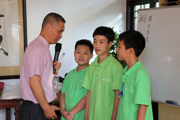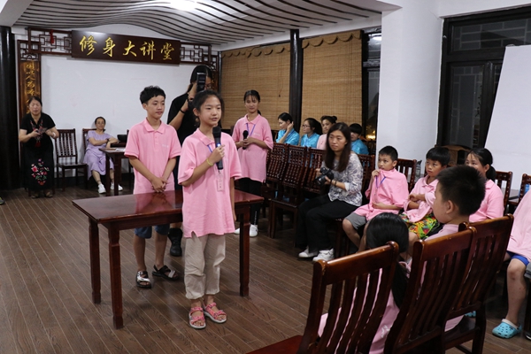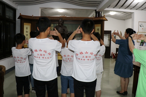 在浦江书院的九天夏令营活动中,华桂学子与来自上海、福州、汕头的孩子们一起,每天进行晨读与晨练,早午晚课前20分钟诵读经典。第一课堂,以院长王新华为主导的讲师团融合儒释道文化,为孩子们主讲儒家“修齐”理念,“孝悌”思想,对营员进行国学熏陶与传统文化的浸润。课程重在矫正营员的行为习惯,调整孩子们的生活与生命状态,塑造他们的道德意识。