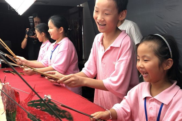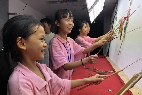 在上海世界非遗文化城中的原野根雕红木博物馆,华桂学子见识了各种各样的奇石和根雕,那是一场艺术与审美的盛宴。在青铜器馆,孩子们上了一堂生动的历史课。在皮影馆,孩子们第一次观看了高水平的皮影戏,还到后台亲自操作了皮影,开心极了。