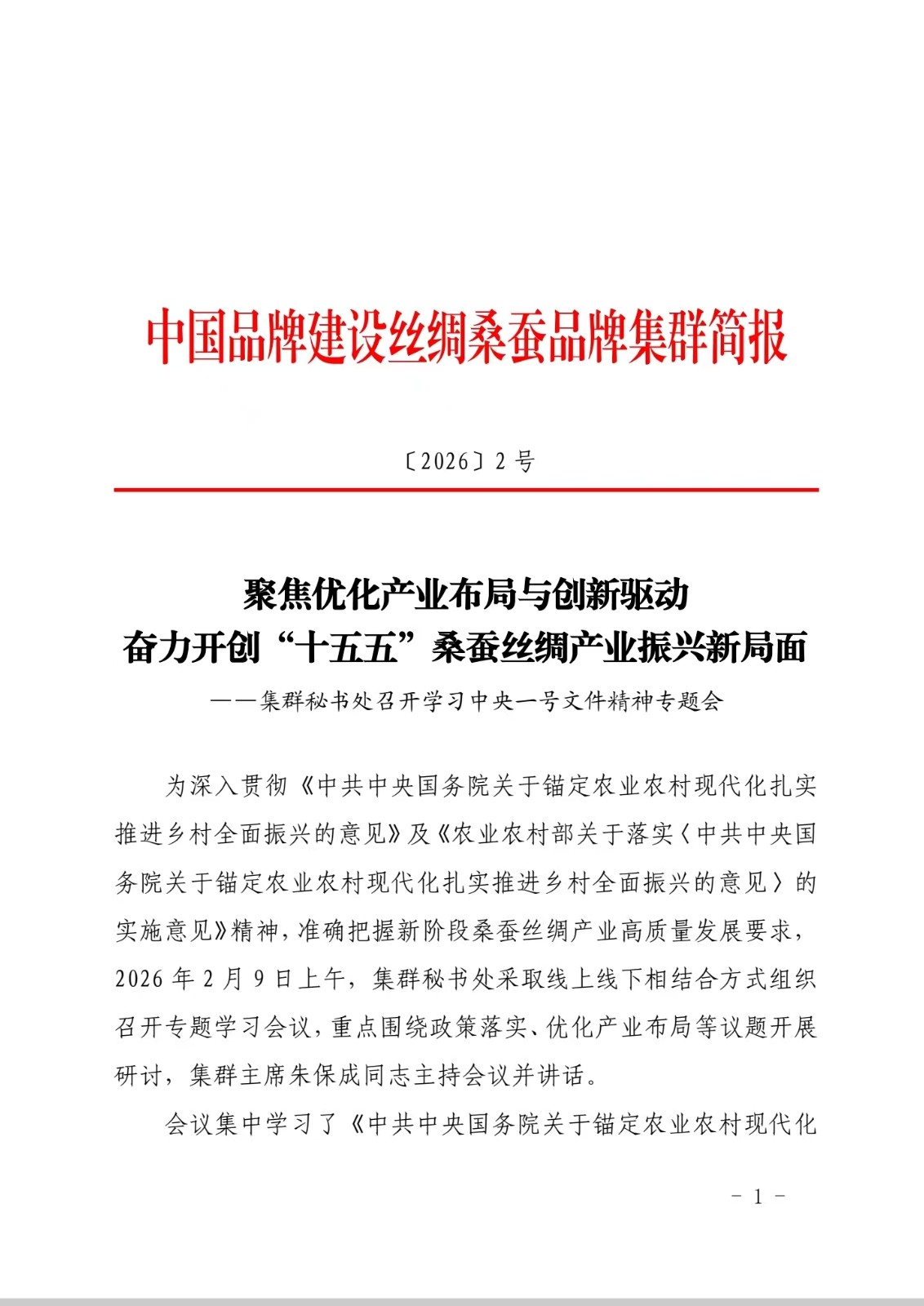 这份简报为长三角桑蚕丝绸产业高质量发展锚定了方向。作为我国桑蚕丝绸产业的核心集聚带,长三角要坚持以党建为引领,把中央一号文件精神转化为推动产业振兴的生动实践。